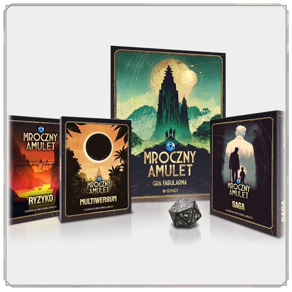 Z tym zestawem nie tylko zdobywasz grę z wszystkimi dodatkami, ale też otrzymasz sporą zniżkę i unikatową kostkę dwudziestościenną wyprodukowaną specjalnie dla Mrocznego Amuletu przez Q-Workshop.